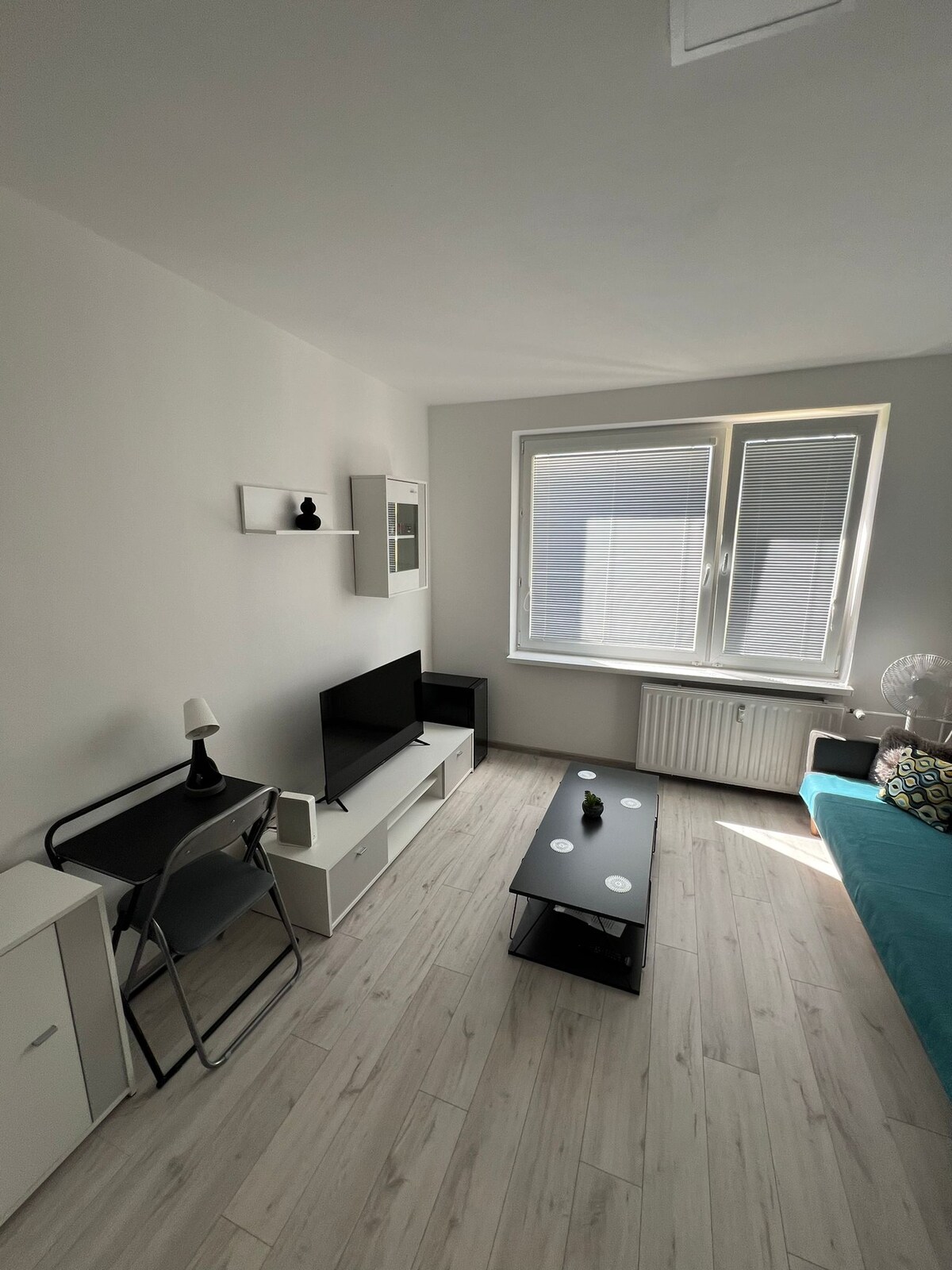 I offer a super-equipped apartment for short-term rent. It has a spacious living room with a sofa bed and a bedroom with double bed. The apartment has an equipped bathroom with a bathtub and a kitchen, so it is also suitable for longer stays. The apartment has a view of the park (fall bars, children's playground). It is located near the city center and many types of shops are within walking distance. Public transport stop (2 minutes) that will take you directly to the city center (5 minutes).