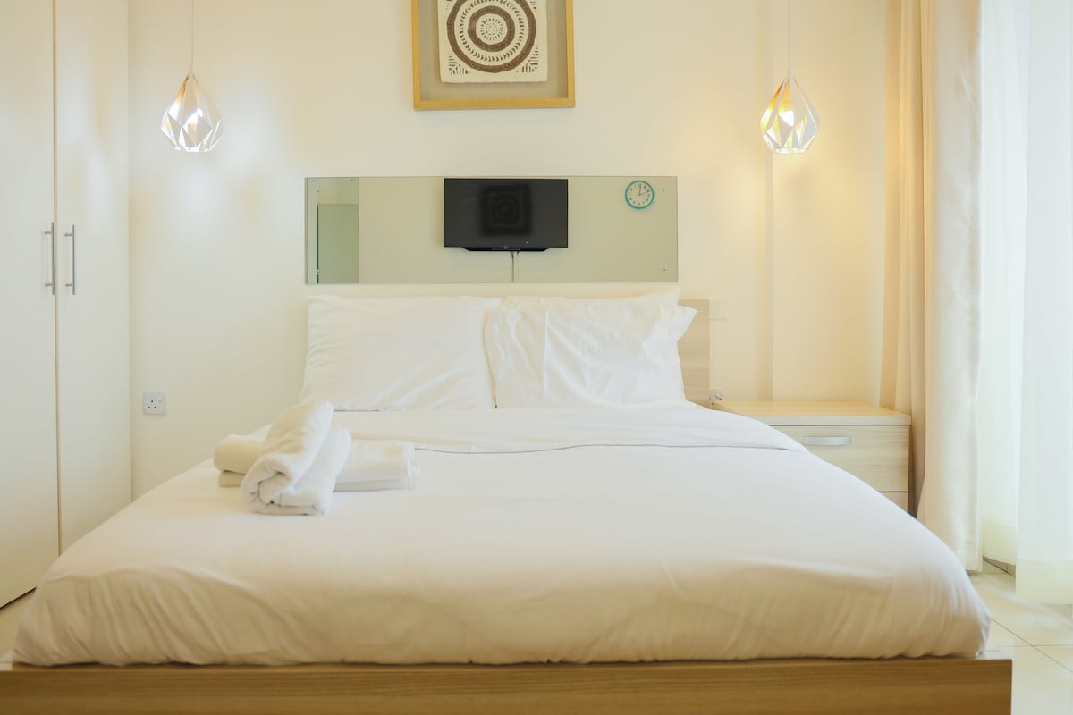 This Studio apartment is 6mins drive away from the airport. It is equipped with modern home essentials for your home away from home experience. Grand Studio comes with swimming and a gym to keep you fit. It's centrally located, which is minutes away from Max mart for your grocery shopping, Tang Palace Hotel, Nester Square. Grand Studio is suitable for singles or couples who want to experience serenity and comfort and be able to connect to other places with ease.