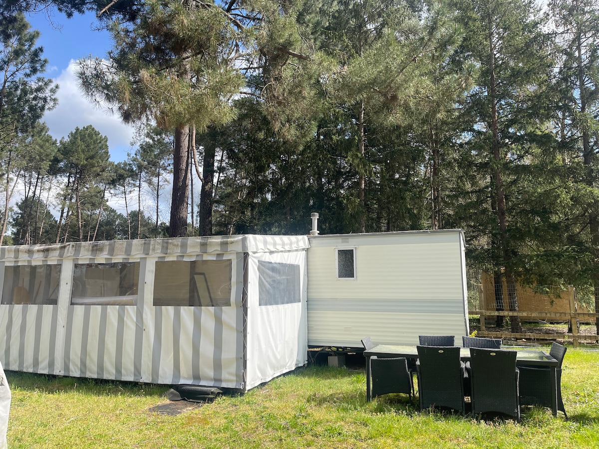 Quiet and secluded in a wooded campsite, come and stay in our charming trailer. A Nordic bath is available for a relaxing moment for couples, or with friends, The trailer consists of a kitchen, bathroom with toilet, living room and sleeping area. Enjoy the outdoors for breakfast (breakfast included), a Mexican brazier or relaxing in the sun.