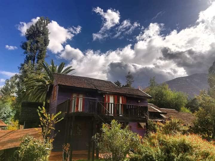 Refugio de descanso en el Cajón del Maipo. Acogedora casa de madera con tinaja exterior y jacuzzi en habitación principal, a solo 30 min de Santiago. Espacios amplios y cómodos, terraza y quincho cerrado con asador. Zona tranquila, a 2 min caminando de minimarket. Ideal para parejas, familias y grupos tranquilos. Perfecta desde 2 personas.