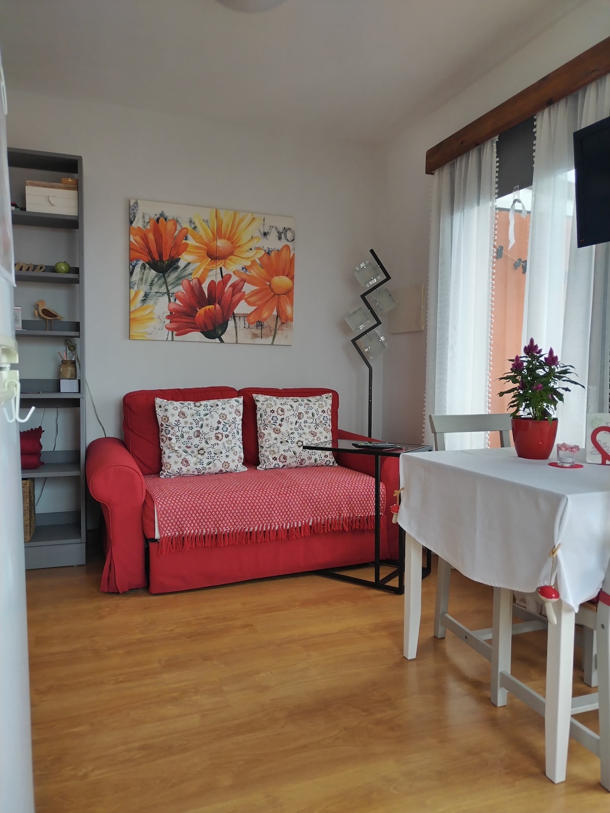 It is a small one-bedroom apartment, with good lighting, one part has a view of the pool and the other of the mountain, it has a large common terrace around the pool and another above the apartments where you can enjoy the views of Mount Teide and the sea