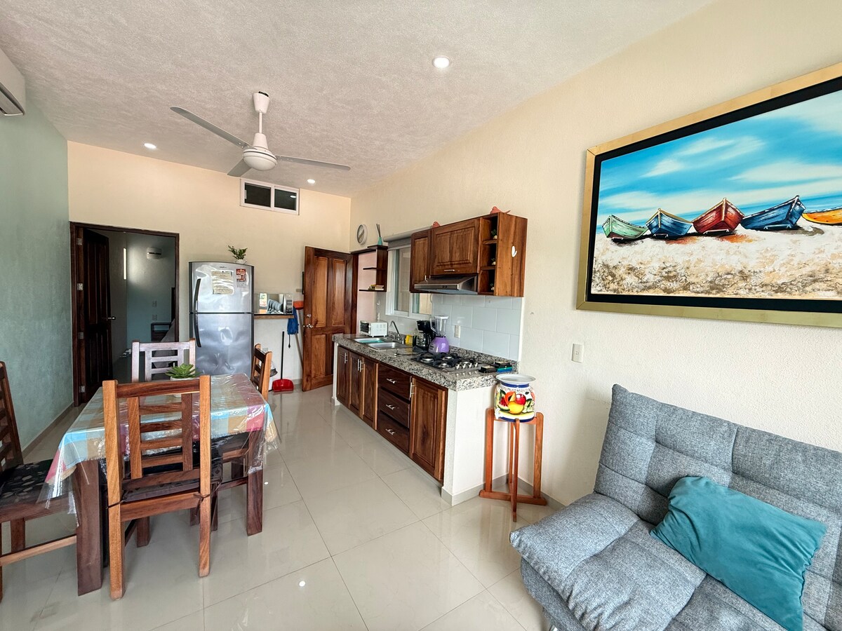 Enjoy the excellent location and security of the place, next to the main square, very close to the beach and with the ease to move to various places of interest The apartment is newly renovated, with an equipped kitchen, air conditioning and good internet (we have starlink and infinitum service)
