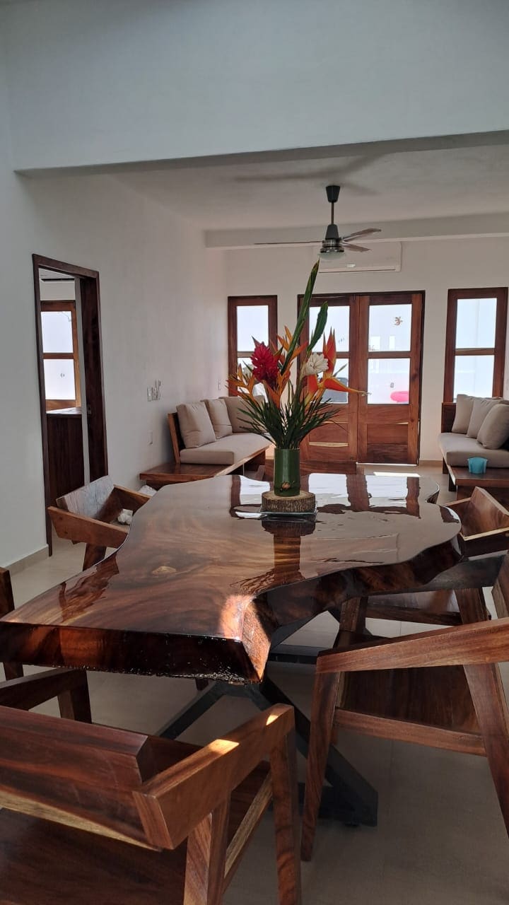 Welcome to Villa Gadi, a new and elegant private villa in Manzanillo, pet-friendly, where luxury, calm, and modern design surround you. Relax in the small heated soaking pool (8 ft 2 in × 4 ft 3 in × 2 ft deep, no jets), enjoy sunsets from the roof garden, and prepare dinner in the wood-fired oven or barbecue grill. Relax in hammocks with the tropical breeze. A/C throughout the villa, including 3 bedrooms with comfortable beds and TVs. The beach is just a 10–15 minute drive away.