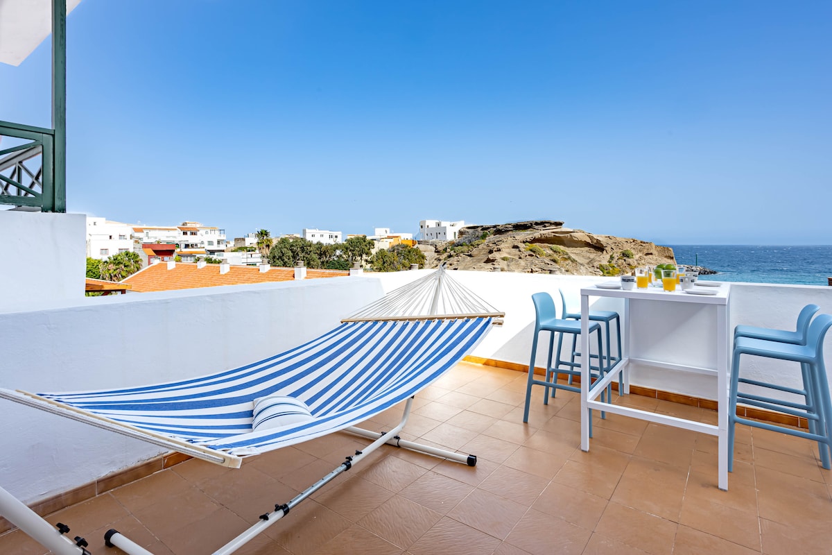 Relax with a gentle ocean breeze in our spacious and cozy apartment located in one of the most traditional and picturesque fishing villages on the island. San Miguel de Tajao is the perfect place to enjoy the sea and the best fish restaurants in Tenerife. The accommodation, only a minute walk from the beach, has a large terrace with stunning sea views, a cozy living room, an open kitchen, two bedrooms, a bathroom and indoor and outdoor storage space. Ideal to spend your holiday or to telework.