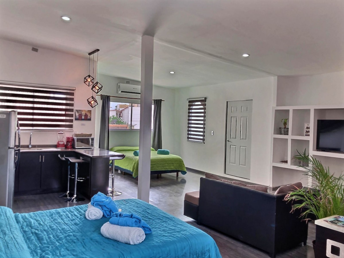 Disfruta de la comodidad y la excelente ubicación de estudio. A pocos pasos de la playa, restaurantes, súper mercados, cine paradas de autobús, etcétera. A pocos 5 minutos de la playa A 7 minutos del hermoso malecón. Cuenta con una cama queen size, baño equipado, wifi, refrigerador, microondas entre otras amenidades escenciales para tu estancia.