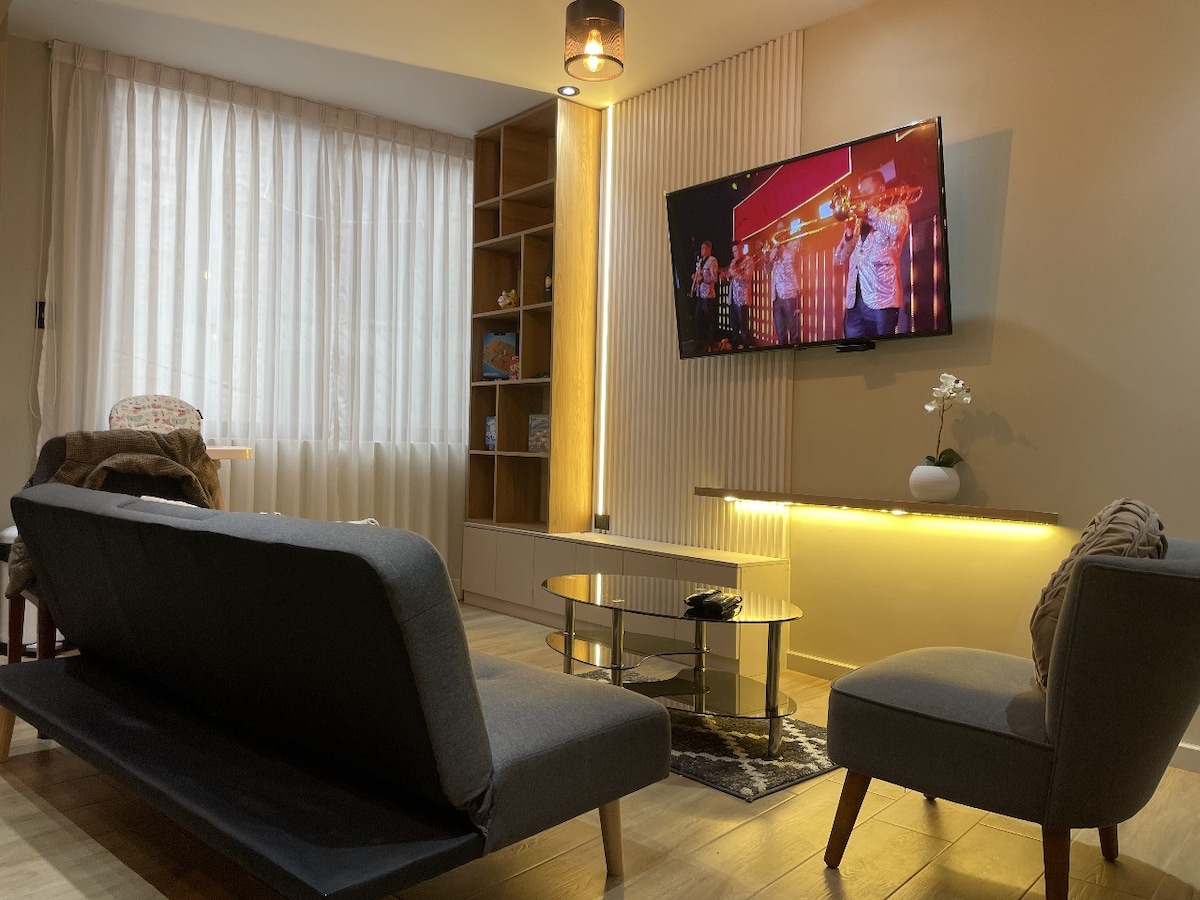 El departamento esta en una zona residencial segura y a minutos del centro. Minimarket con agente BCP en 1er piso. El depa cuenta de 2 amplias habitaciones, la habitación principal tiene una cama King de 2x2, la segunda tiene una cama matrimonial, tiene 2 balcones con vista a la calle, 1 baño con agua caliente en la ducha, SmarTV de 50" con Netflix. Cocina bien equipada. Reclama tu cortesía si reservas más de 1 semanas.