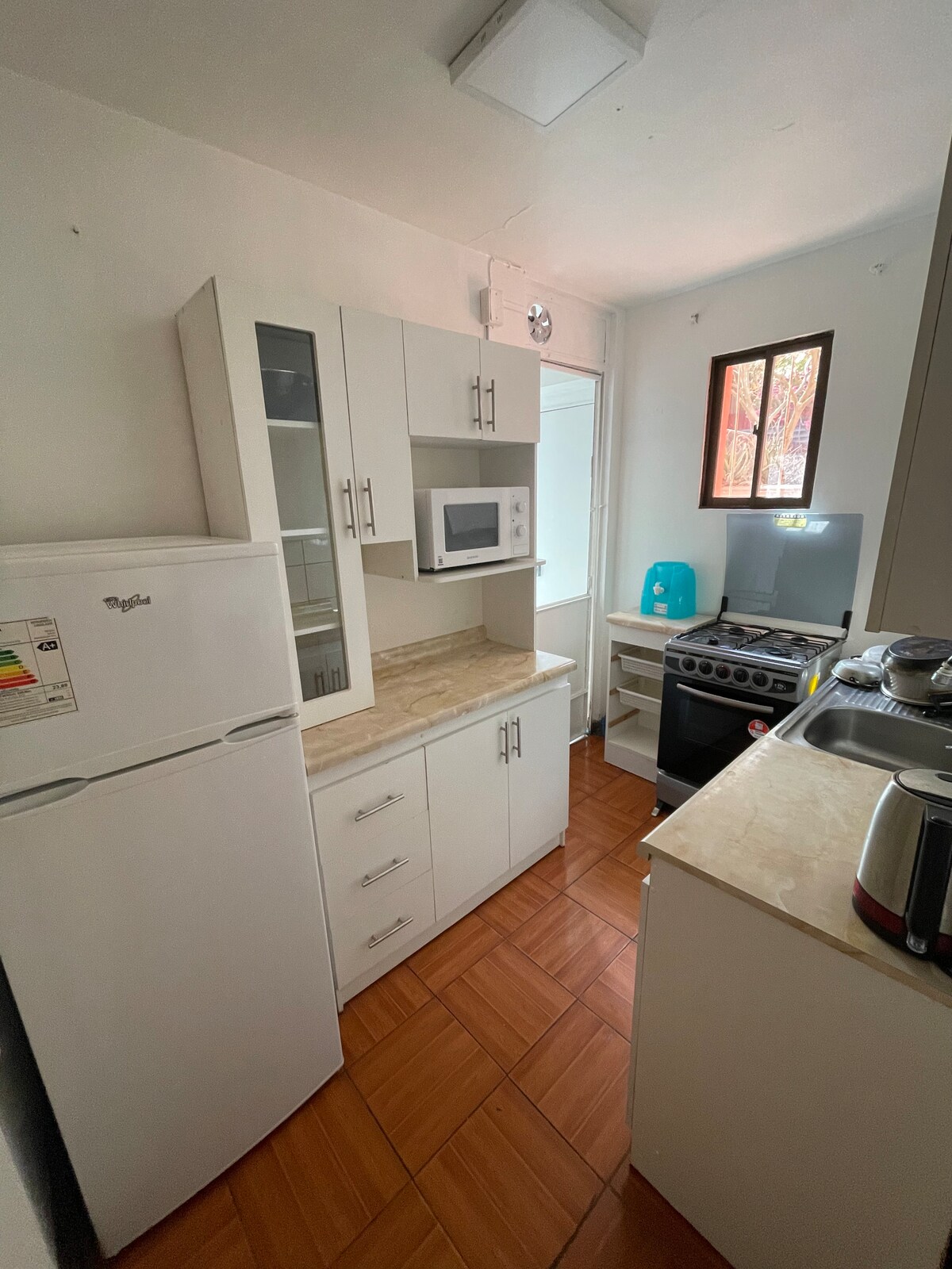 Fully furnished apartment for 5 people steps from Playa Las Machas and Chinchorro located inside a residential condominium with guards. Excellent quiet and safe location, close to restaurants, minimarket, food outlets, plaza with sports games. Excellent connectivity. Located on the third floor without an elevator. The apartment consists of: 3 Bedrooms 1 bathroom Cooking Washer Terrace with futon Wi-Fi 2 TVs with apps Parking Daily car rental available