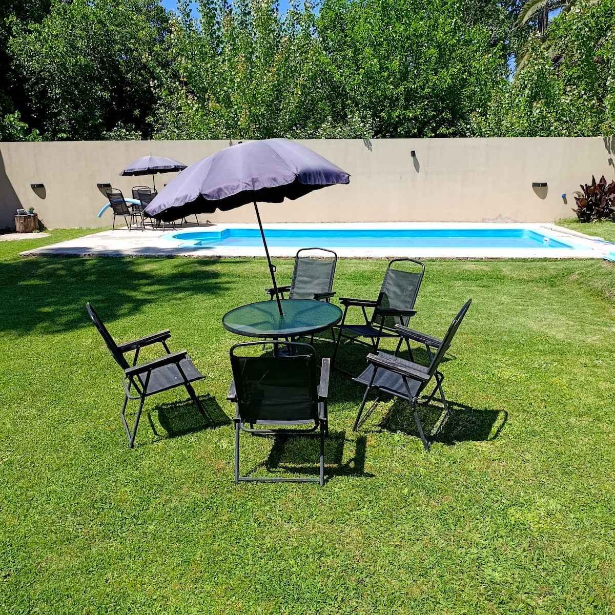 We invite you to spend a moment with family or friends, in contact with nature, away from the noises of the city. You can enjoy all the spaces we have, they are not shared, we have approx. 1 hectare: * Large House *Quincho and bathroom included * Perimeter Pool *Park with old trees, Eucalyptus, Pines, Fruits, Ombú, Walnut, Plums,Chestnuts, Maple, Blackberry, and variety of flowers. Our place has: * Barro oven *disco arado *Stove *Mangrullo