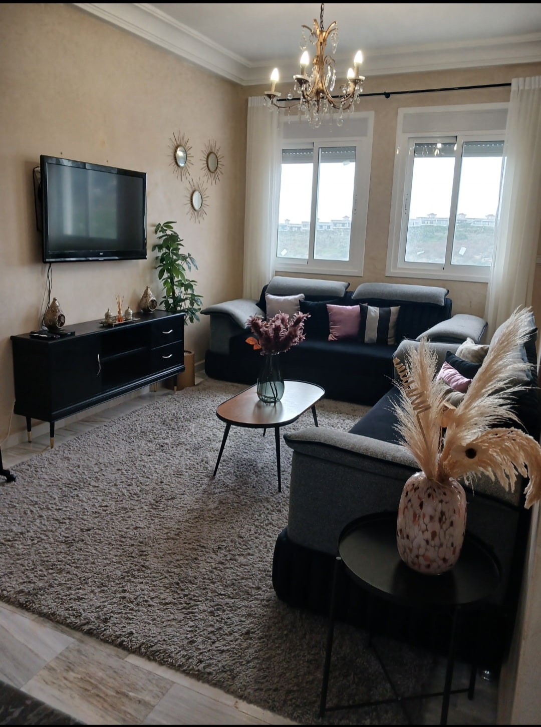 This new apartment offers a modern and comfortable stay, ideal for guests attending the Africa Cup of Nations 2025. Located in a secure residential, it is only 10 minutes from Tangier Airport, 15 minutes from Ibn Battouta Stadium, 30 minutes from Tangier-Med Port, and less than 5 minutes from the ocean beach. Fully furnished and equipped with new furniture, appliances, linens, and towels, this accommodation guarantees a clean, convenient, and enjoyable stay.