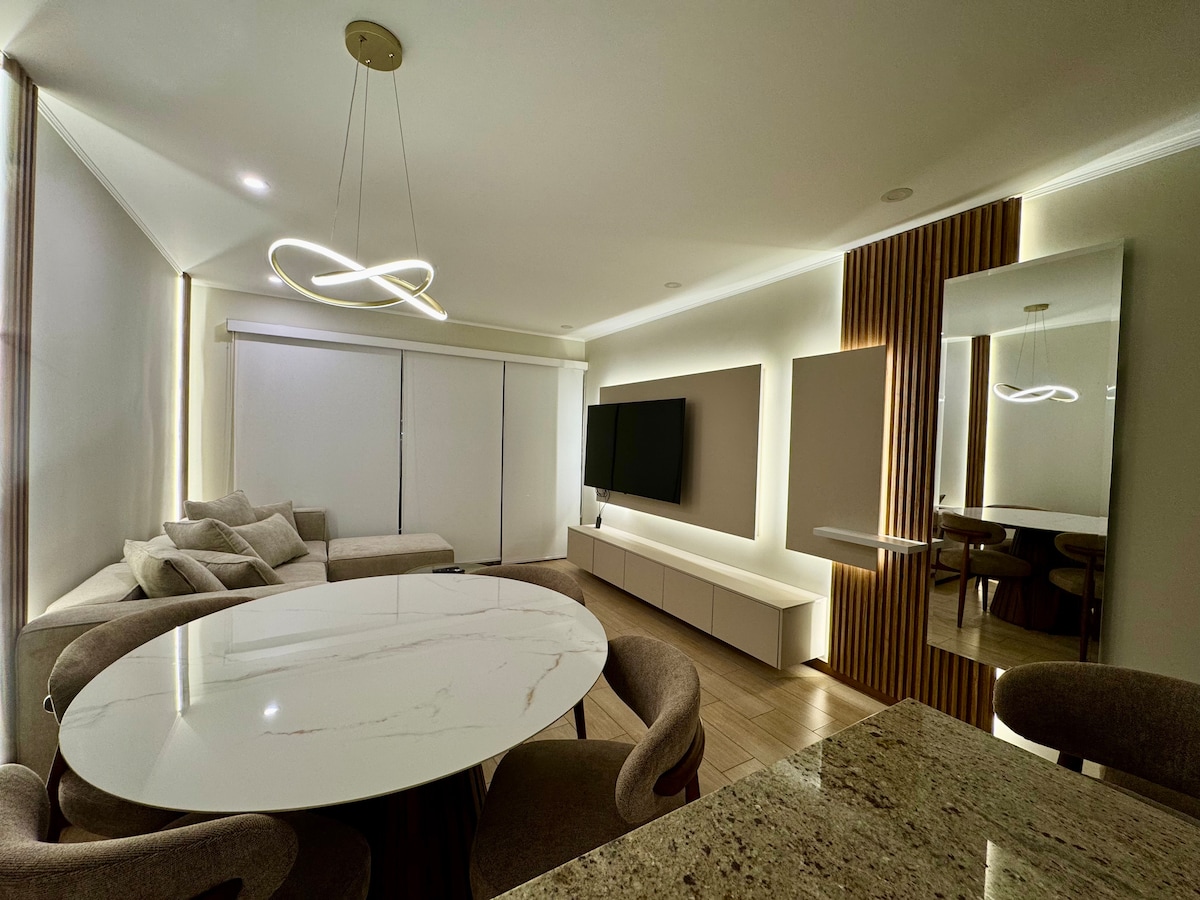 Welcome to our spectacular modern apartment, where elegance meets comfort. Enjoy stunning ocean views from every corner of this space, designed for you to relax and enjoy the beauty of the horizon. This apartment features an innovative set of lights that will allow you to create the perfect atmosphere for any moment, be it a romantic dinner with your partner or a relaxing night with your friends.
