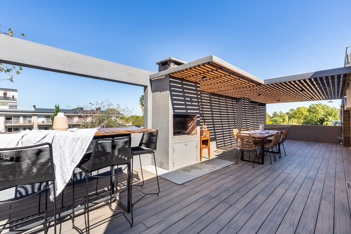 Relax in this unique and quiet accommodation, located in the tourist area of Tigre. Facing the river and surrounded by various gastronomic proposals, museums, and squares. A large terrace with the most beautiful sunsets over the river, to share with family or friends. With its own garage, swimming pool, gazebo and shared laundry on the ground floor. Very close to the main attractions of Tigre (casino, art museum, theaters, Puerto de Frutos, Parque de la Costa).