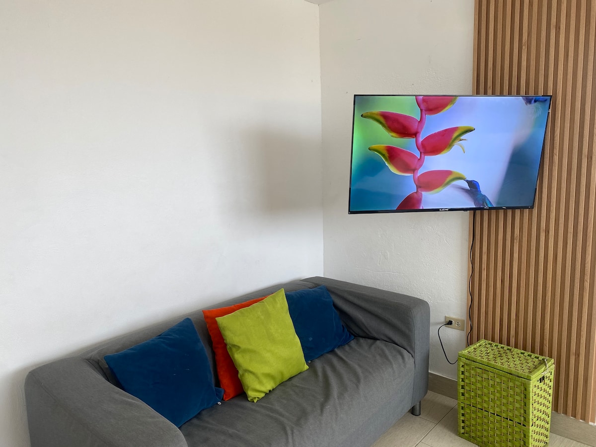 "Apartment in a luxury tower where you will have the necessary comfort to enjoy your stay. The apartment has a bed, refrigerator, stove, toaster, electric coffee maker, washer-dryer, cooking utensils, an air conditioner in the living room and another in the bedroom, a covered parking lot and two televisions with YouTube services The tower has an electric door, an impressive social area, gym and meeting room.
