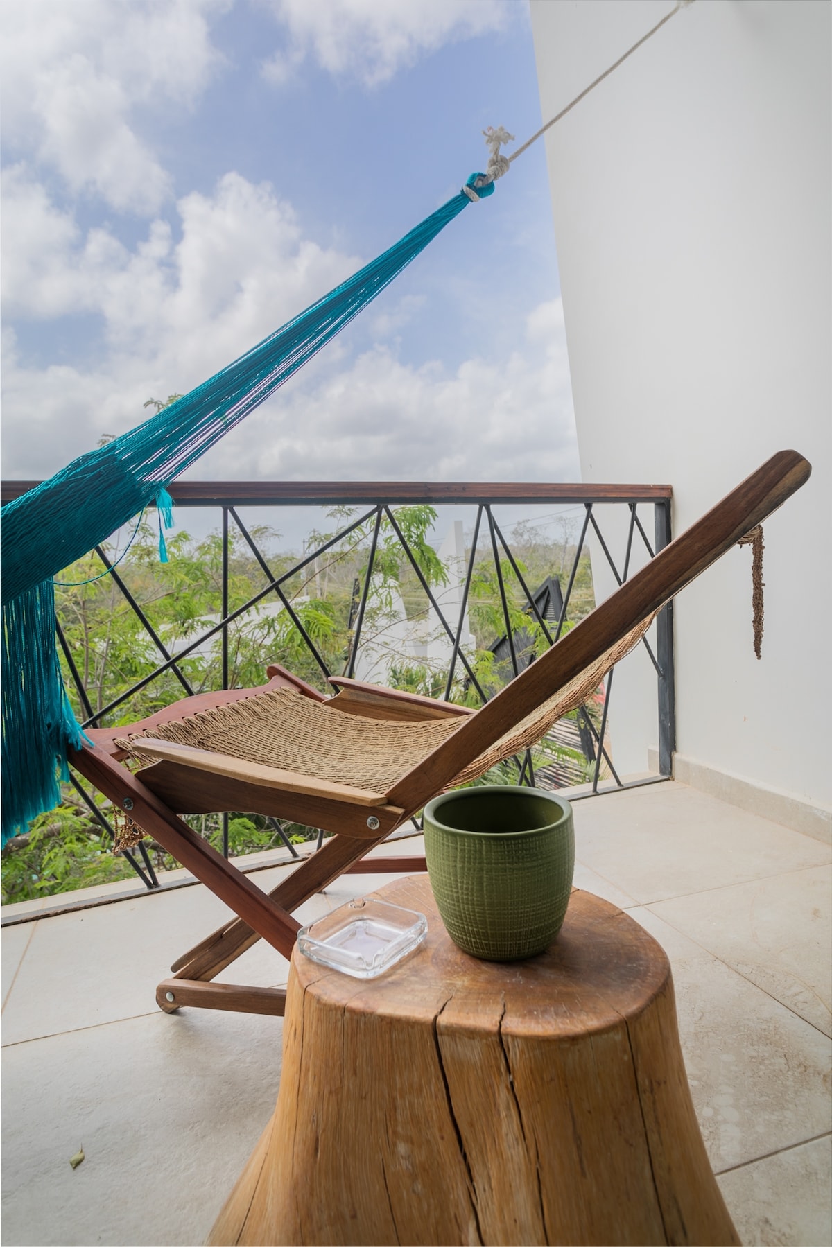 Jungle Oasis Loft w/ Private Plunge Pool & Terrace! Escape to this stylish 2nd-floor loft with a private terrace & plunge pool overlooking lush jungle views! Enjoy free bikes during your stay, a fully equipped kitchenette, and 24/7 security for peace of mind. Designed for couples, solo travelers & digital nomads, this modern retreat is cozy,quiet,and surrounded by nature just 15 min from the beach & downtown! Relax in your kingsize bed, dip in your pool,or explore nearby cenotes,beaches & more!