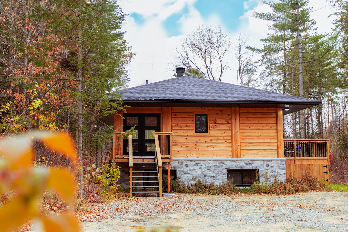 Our Nordic forest chalet is perfect for spending quality time as a couple (or with a kid), or for a work-retreat (with high-speed WiFi). The wooden interior is warm and cozy. The full-height windows offer stunning views over a forested valley. The open-concept kitchen and living room keep you in the conversation while cooking. If you prefer to cook outside, there is a fire pit with a grill and outdoor dining table. Only 70-min drive from Montreal. The lake is a 25-min walk if you park nearby.