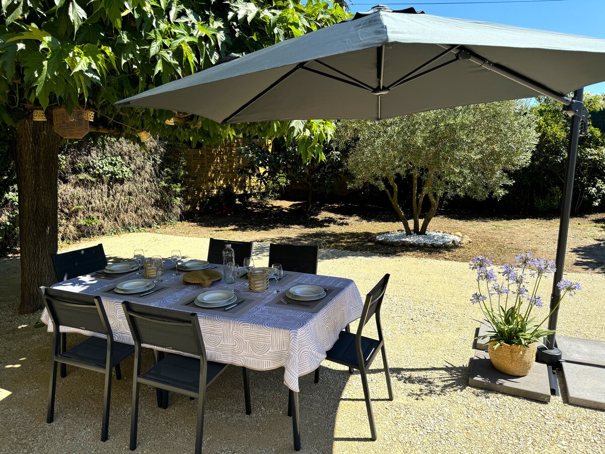 Welcome to our private oasis for 1 or 2 people in the heart of la roquette! Enjoy the heated salt water pool surrounded by tropical plants. The space will offer you a haven of shade and tranquility. Have breakfast, an aperitif, or cook poolside in the outdoor patio kitchen. The bedroom is air conditioned and equipped with luxury hotel quality bedding and organic linens, to ensure that your stay is relaxing and memorable.