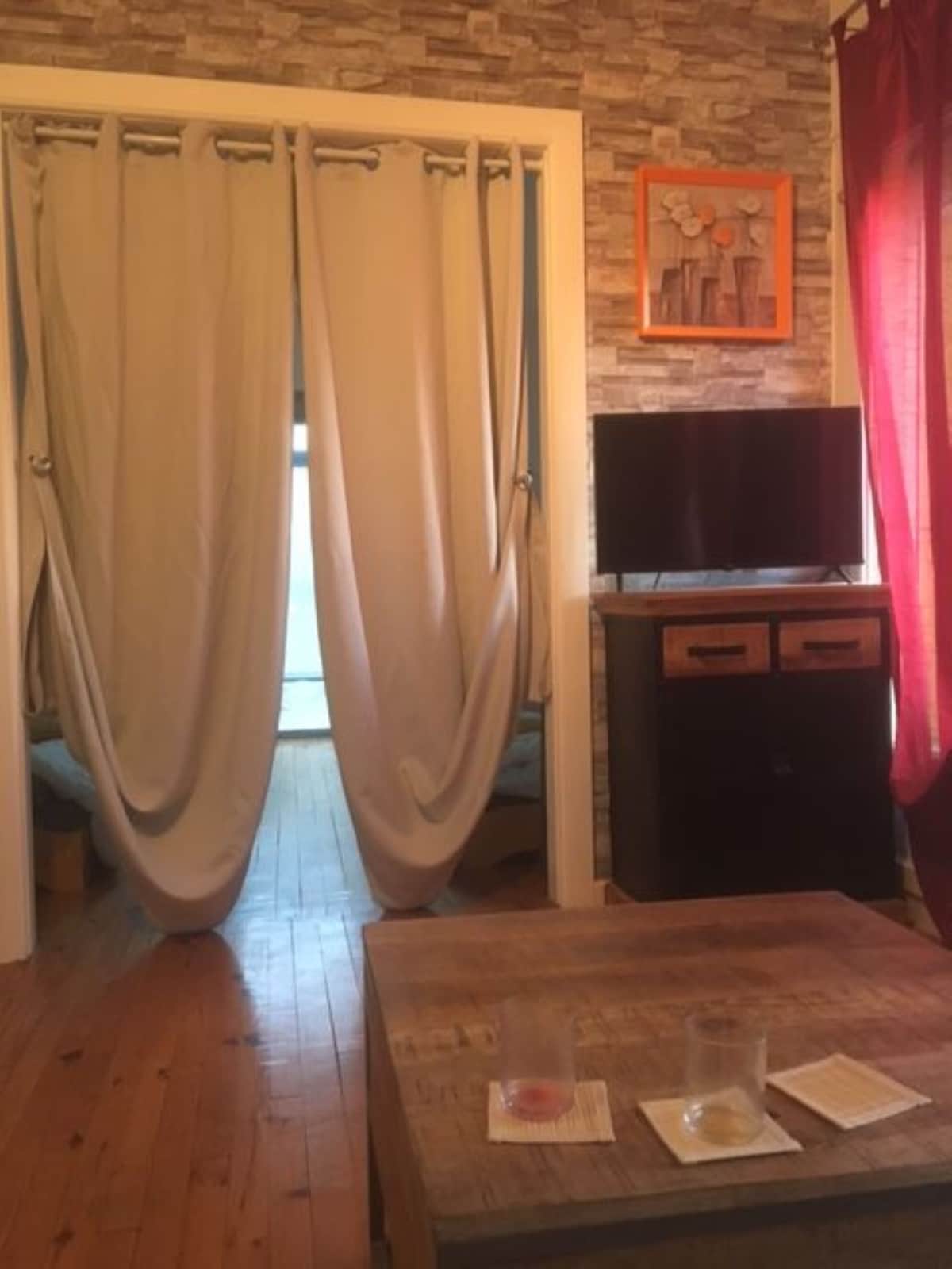 Apartment close to the city center and its shops and restaurants; but also the lake, parks and ski shuttles. You can do everything on foot. This apartment includes: -1 double bed bedroom + closet - 1 bedroom with 2 single beds + closet - 1 bathroom with bathtub, washing machine -1 living room with TV, games (Monopoly, Uno) -1 equipped kitchen (fridge, freezer, oven, microwave, dishwasher, kettle, Senseo) Easy access. Free parking spots in the street.