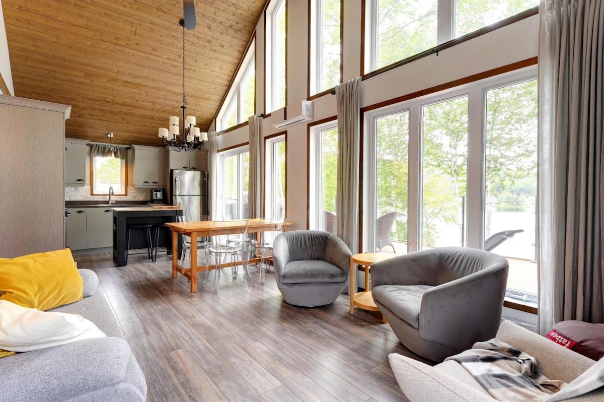 Chalet Le Fidèle, located in Lanaudière, a new modern construction, right by the water, is a place to slow down, disconnect and spend quality time with family and friends, in a peaceful and inspiring place. This luxurious Scandinavian-inspired home was designed to preserve the beautiful lake view that will dazzle you upon arrival. The cottage is equipped with everything you need for a memorable stay!