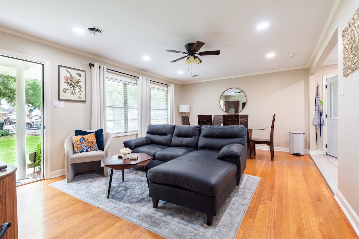 Located under beautiful live oaks in the Broadmoor Subdivision. This adorable cottage is in close proximity to local restaurants, shops, churches and playgrounds. The open kitchen is stocked with cooking supplies and basic seasonings, including, a charcoal BBQ pit to grill your favorites while enjoying the outdoor fire pit. Enjoy a Mardi Gras parade up the street, just minutes from your front door!