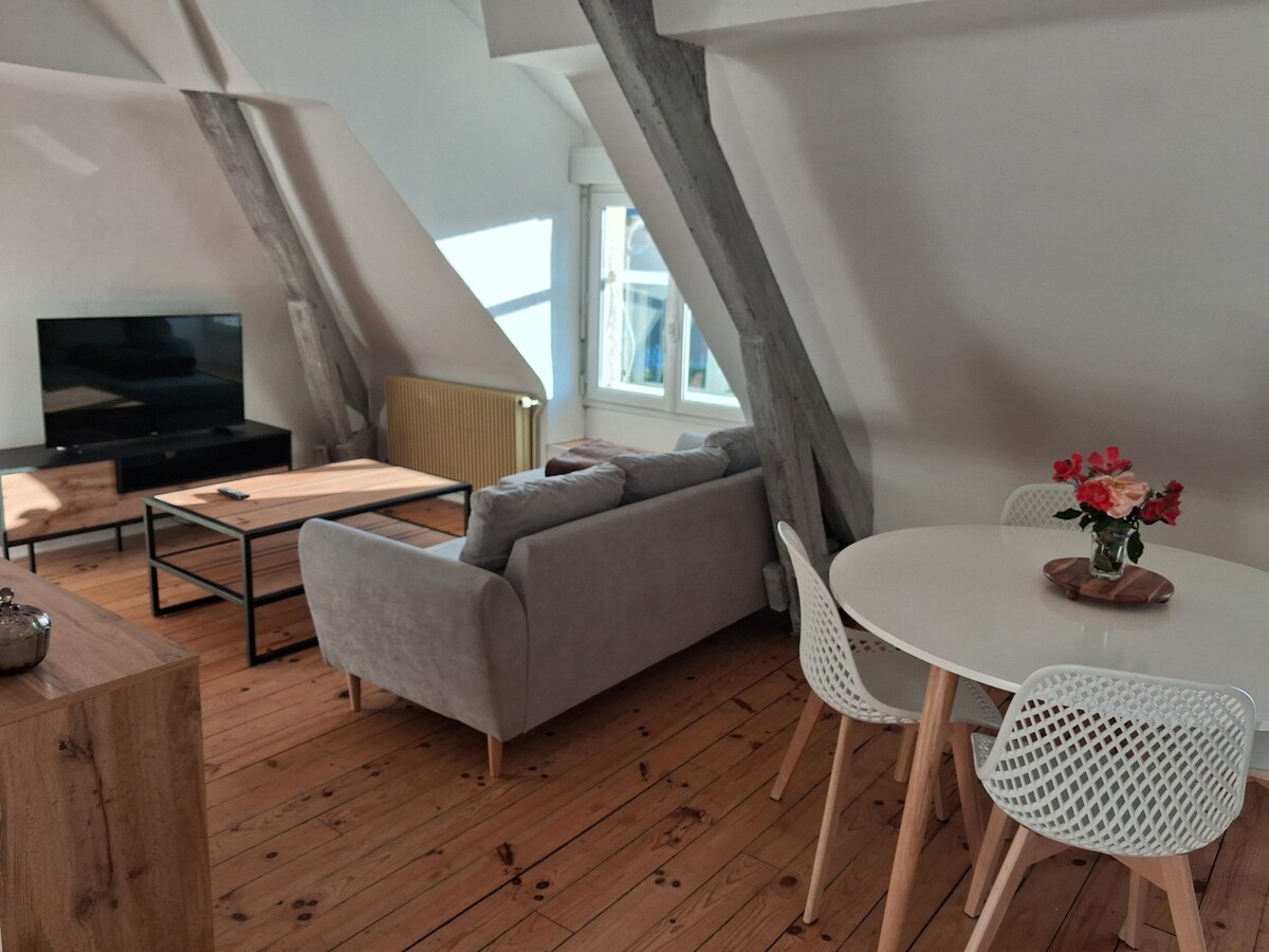 Large renovated equipped studio in the Historic Heart Available in the accommodation: - Bed linen and towels - Welcome products: tea, coffee, madeleines, shower gel - Fiber WiFi - Smart TV - Washing machine/dryer - Dishwasher - Microwave grill - Induction cooktop - Senseo coffee machine -Water boiler - Fridge - Mini dressing room Optional: - Breakfast at Chez Rosette restaurant €8/pers. - Late checkout 1 p.m. / €10 supplement Self check-in after 4pm and checkout before 11am