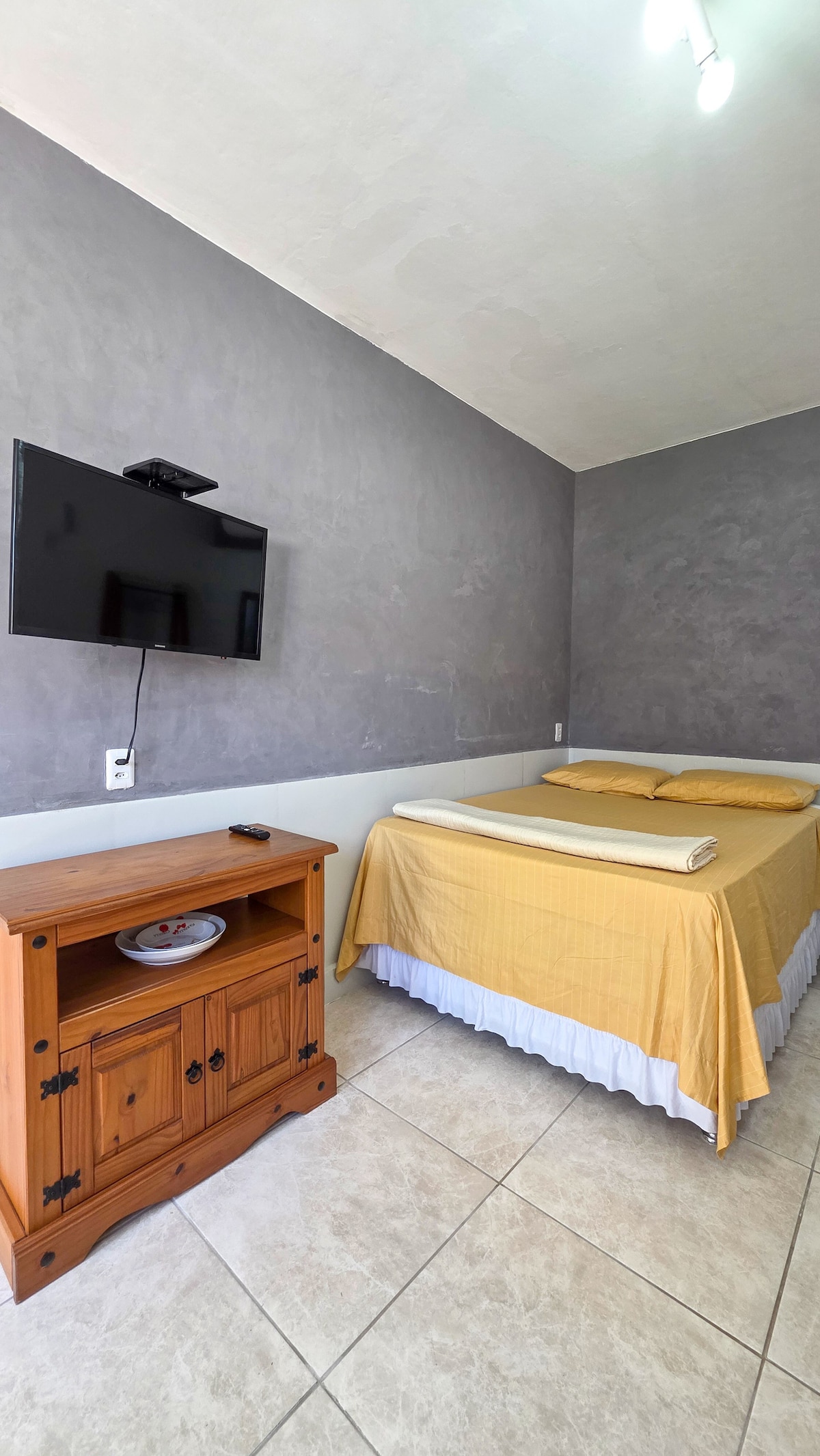 Studio with SELF CHECK-IN consisting of a suite with TV and 1 Queen bed, private bathroom, work space with excellent Wi-Fi and mini kitchen. Laundry, pool areas, barbecue and balcony are shared. The place is excellent for a pleasant stay and for good rest nights.