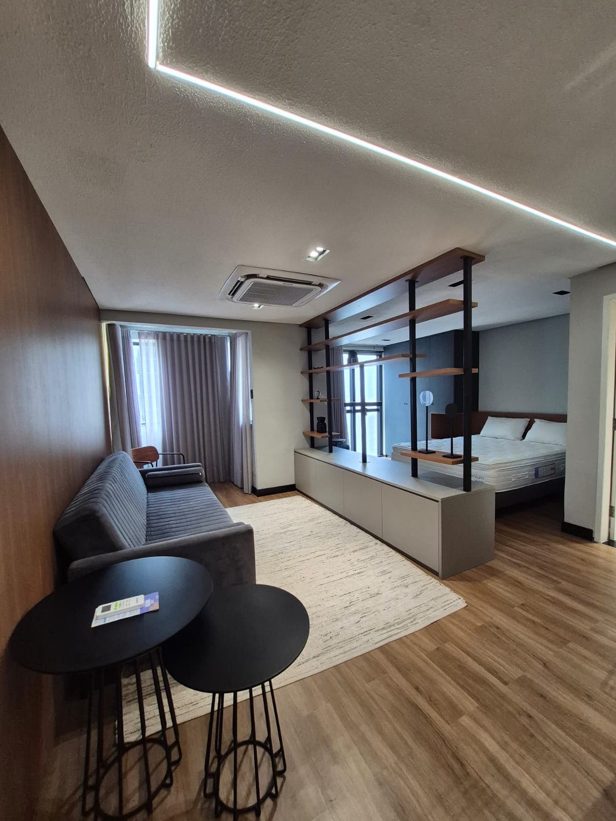 Studio model apartment, located on Avenida dos Holandeses, in the Calhau neighborhood. With 30 m², it features a balcony with a city view. The space combines bedroom and living room with an open-plan kitchen and private bathroom. The apartment accommodates up to three people and has a digital lock on the door. The condominium offers a complete leisure area, remote concierge, 24-hour reception with doorman, and a parking space. Located near beaches, supermarkets, and restaurants.