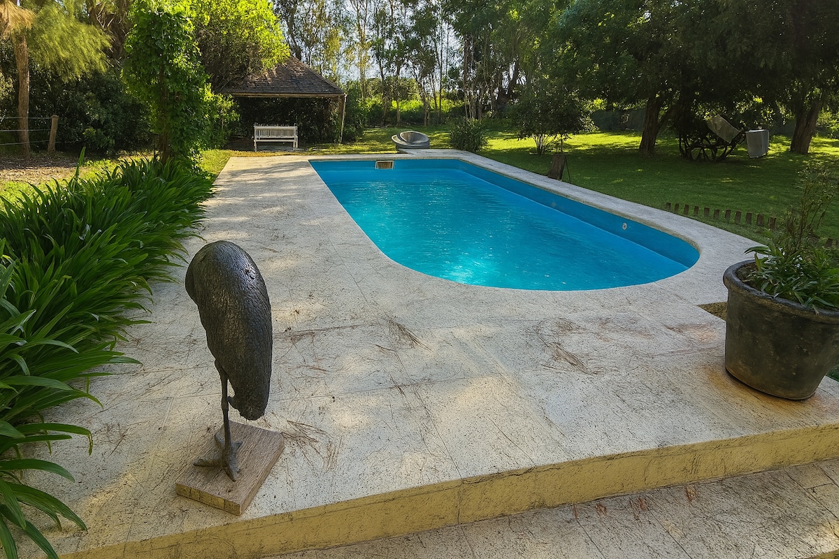 Relax in our Casa de Campo Santa Lucia, just 110km from CABA. It is 700m from the asphalt, entrance by Francisco Berra and 10km from S.M del Monte. It is a recycled hull that features a chapel and a giant park full of trees. The house has 3 bedrooms, 2 bathrooms, fully equipped kitchen, laundry room, dining room, living room with fireplace, stoves, pool and grill for you to enjoy a few days of pure peace and tranquility.