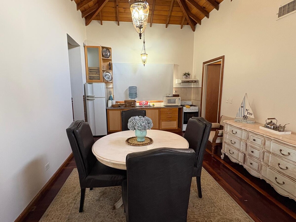 Relax in this quiet, warm space. Located on a 500m2 property, allowing you to enjoy the sound of nature just minutes from downtown. Ideal for couples or a family of three. Set in a rustic and Mediterranean style, providing comfort. It has an equipped kitchen, dining room, living room with an armchair (soft plate) for one guest to rest, anteroom and bathroom, master bedroom with queen size bed, bedding, grill and semi-covered gallery. Large park and pool