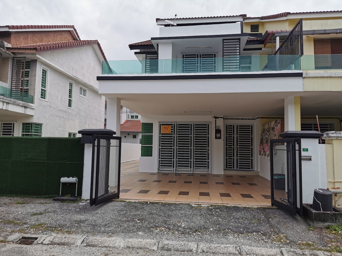 Renovated 1-storey house with FREE wi-Fi! Your whole family (max 12) rest comfortably in 4 fully air-conditioned queen size Japanese Tatami bedrooms with 3 full bathrooms. A U-shaped bar table open kitchen (air conditioned) with fridge, induction cooker and kettle for your light meal and family casual cook during holiday. The house has enough power outlets (USB charging) Remote auto gate access for 2 cars parking porch. Car wash is welcomed. Filtered water system available.