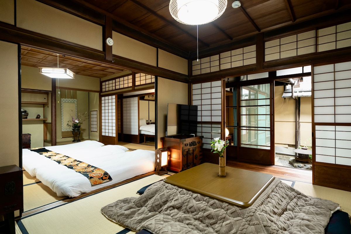 The beautifully refurnished 100-year machiya enjoys all the charm of traditional and modern Japan spirit: tatami, sliding wooden doors with wa-shi partition, private garden, along with selected luxurious modern comfort. Located inside the tranquil area of Chomyo temple while only 5 mins' walk from subway/Keihan Sanjo sta., we promise you a fully immersive Kyoto experience. Also convenient to walk to Gion and Heian Shrine. Supermarkets and amazing restaurants in neighborhood at your service.