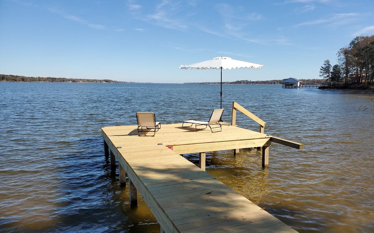 Relax with the whole family at our beautiful and serene A-Frame. Nestled within a forest of pine trees and fronting the lovely Lake Bob Sandlin, Burning Daylight, is your home away from home. A full kitchen, two en-suite bathrooms, bunk room with bathroom and cozy loft make this place perfect for a large family or a couple of groups! The back deck overlooks the lake for quiet mornings with a cup of coffee while the boathouse and dock make for a great space for all of the lake activities.