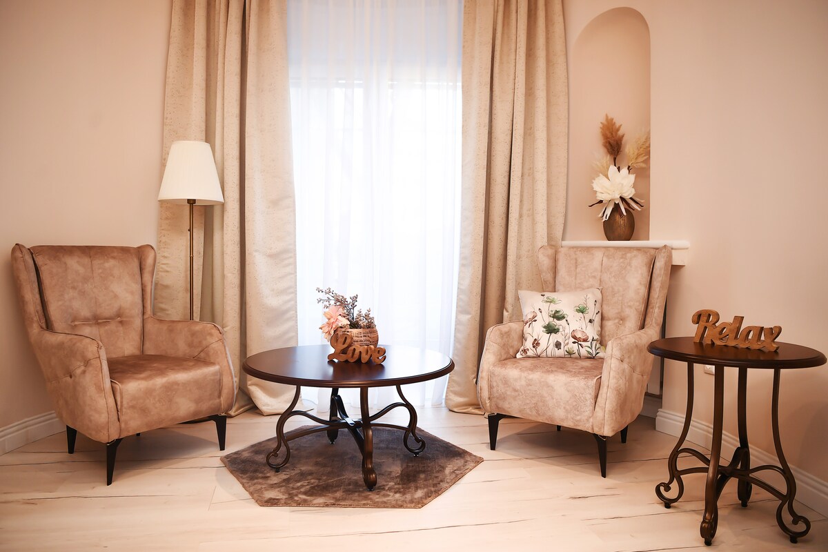 Stay in a stylish modern-retro apartment in the heart of Bucharest Old Town, just across the National Bank — one of the most central and safest locations in the city. Tucked away towards an inner courtyard, the apartment offers a calm and comfortable retreat, with fast WiFi and everything you need for a smooth and enjoyable stay. Thoughtful extras such as board games and family-friendly touches are also available to make the space feel even more welcoming.