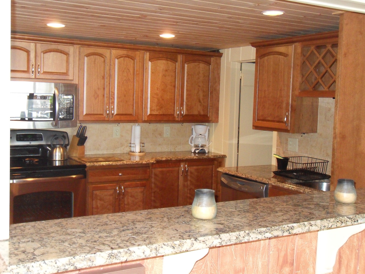 A genuine luxurious Adirondack 4 bedroom(3 queen & 1 king) 2 bathroom ranch in an Upscale location on the northern side of the village. Fine dining at The Inn At Erlowest around the corner, or at the many eateries 1 mile south in the village. You can park your boat in the large driveway, bbq on the large deck surrounded by woods and take the family to the lake. 30 minute drive to Gore Mountain, Saratoga Race Track and Casino and much more. Each room is climate controlled individually