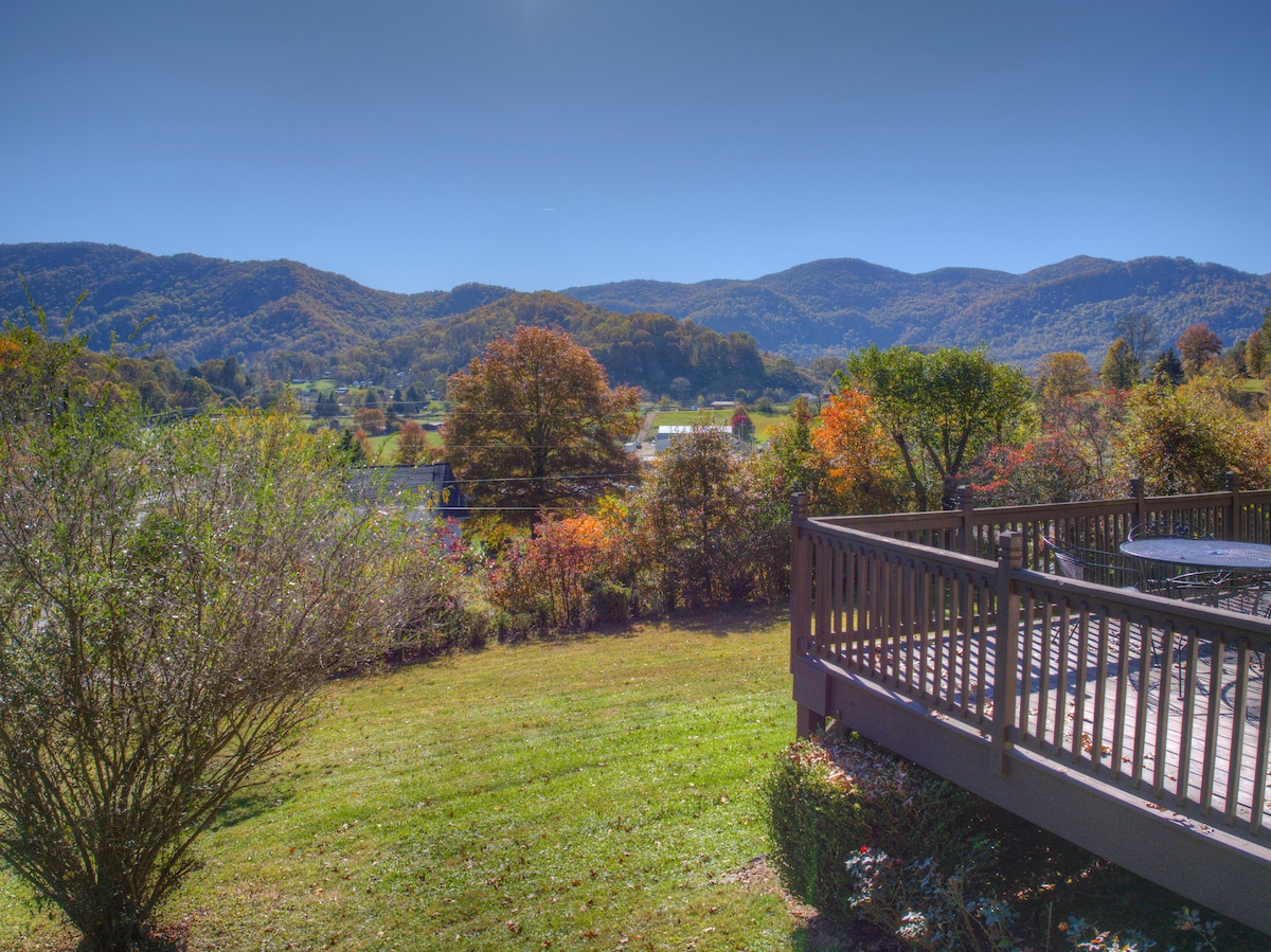 Mid-century meets mountain hideaway. Panoramic mountain & golf course views give this gorgeous home a luxurious feel. This home is one mile from Maggie Valley Country Club (golf and restaurant open to public), trout streams & hiking trails. Whether you are an outdoor enthusiast looking to ski at Cataloochee, take a day trip to Asheville to enjoy breweries, Cherokee to visit the Casino or drive the Blue Ridge Parkway, this is the ultimate getaway. Sleeps 6 with over 1500 sq ft of outdoor deck!