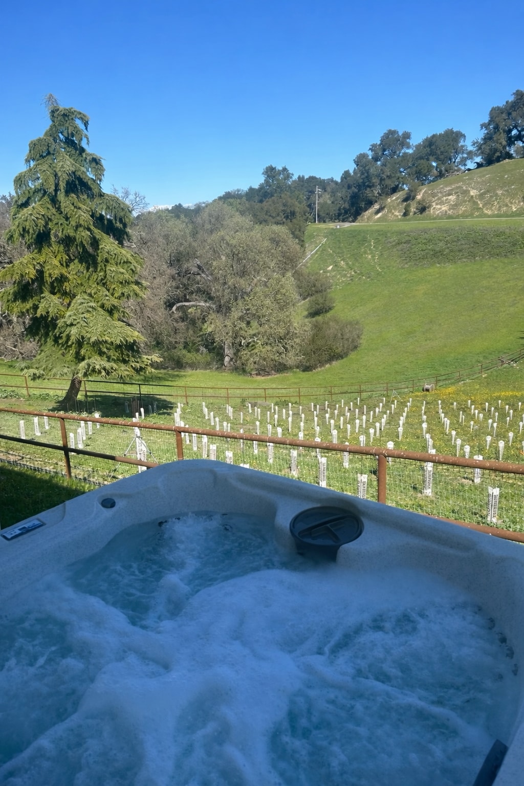 This place is magical. Seven private acres with 360 degree views are surrounded by vineyards which can be seen through most windows. On property, depending on the season, you will find apples, pears, peaches, cherries, figs, loquats, persimmons, pomegranates, pecans, chestnuts, and several grape varieties. The outdoor space includes a wrap-around covered patio, outdoor dining, multiple sitting areas, fire pits, swings, games, and outdoor cooking. It is truly one of a kind.