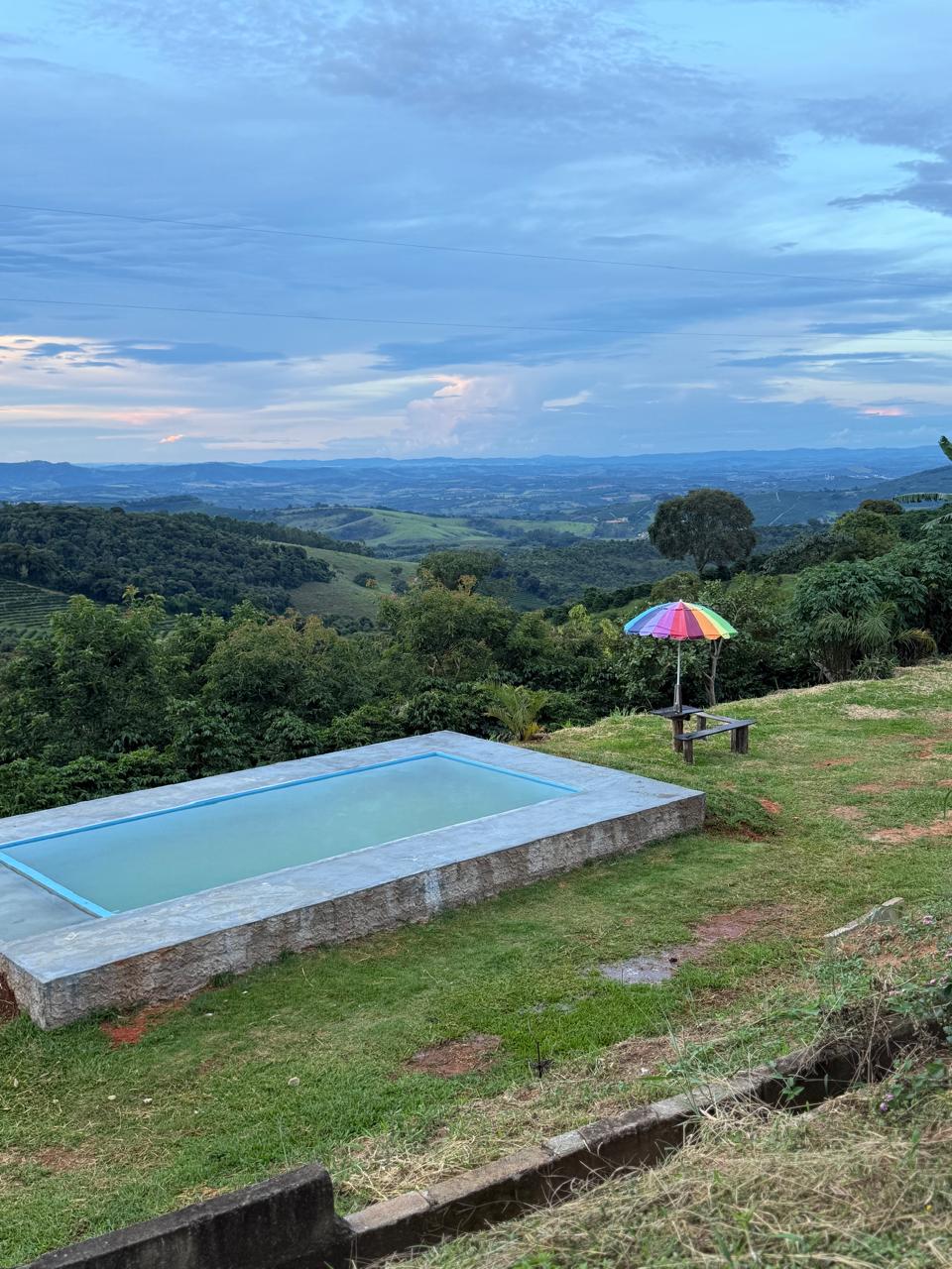 Chalet with mezzanine and balconies, rustic finish, comfortable, views of coffee plantations, mountains, stones, crystal clear waters, forest trails to 3 waterfalls. Constant visits from birds and small wild animals. Located in a rural area, close to a rural neighborhood, 10 km from the city center. Tranquility guaranteed.