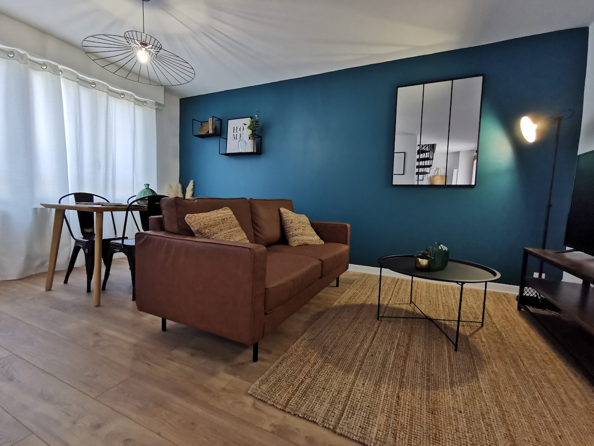 Nice 47 m² 2-room apartment, comfortable and bright, for 2 people, on the 3rd floor with elevator and private parking, 50 m from the Thermes des Arènes, free shuttle and bus stop nearby. Beautiful unobstructed view for this apartment equipped with quality furniture, linens provided. Baby cot and high chair available. Rated 3*. The beds are made on arrival. Personalized welcome. NO KEY BOX! You will be like "at home", but better! Self-checkout possible!