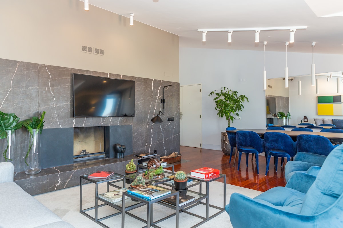 Enjoy a unique experience in this luxurious penthouse located in the Chiado district. With a breathtaking view of the city and the river, it has a loft and terrace with a 180 degree unique view. The open kitchen is designed with high quality appliances and dining space which leads to the living room. For evening, 2 king size beds and 3 bathrooms with fitted wardrobes provide relaxation, comfort and welcome organization. The top floor loft has a bar area, tv and a comfortable sofa for quiet time.