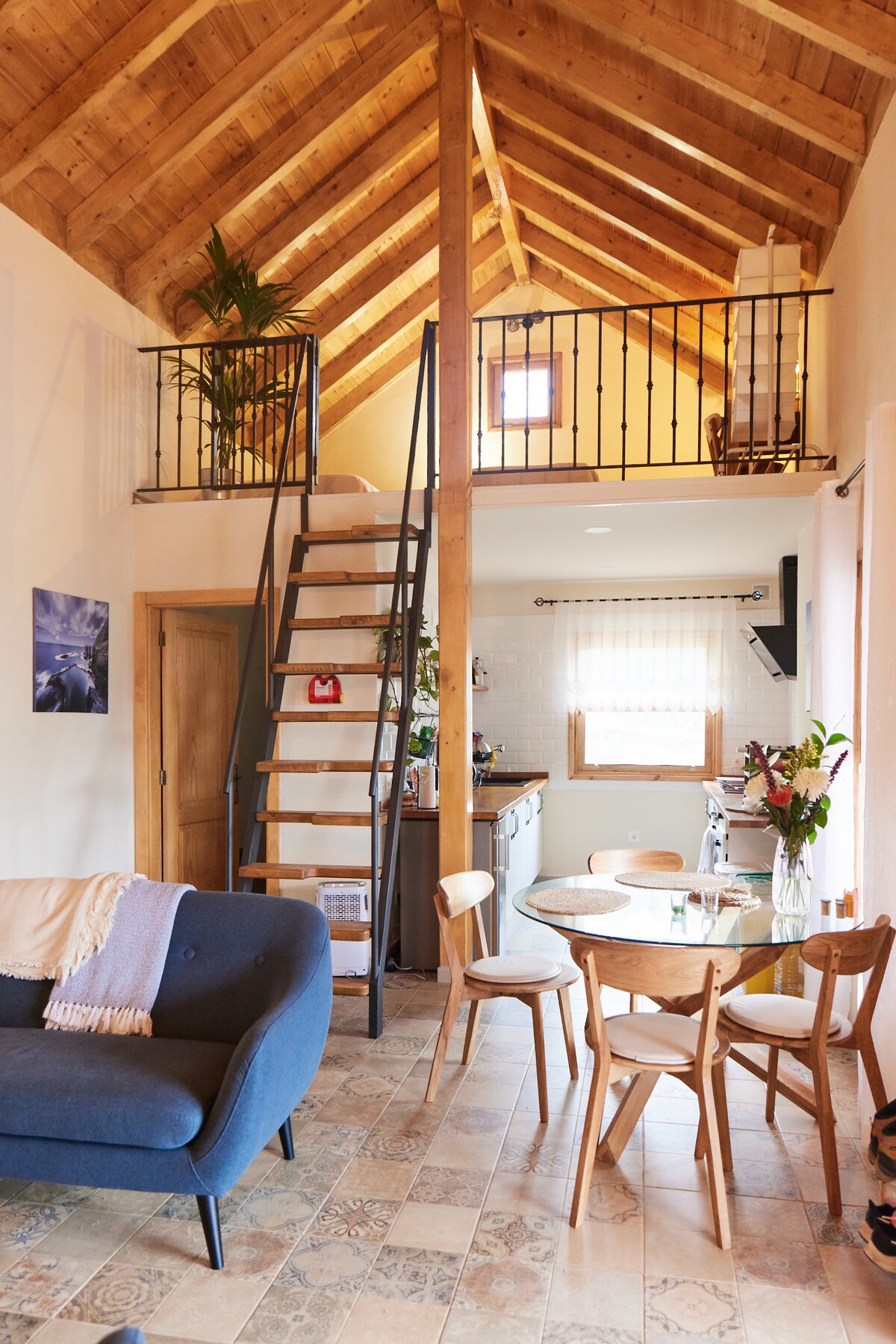 Relax with spectacular views, have breakfast on the terraces, sunbathe on the loungers connecting with nature while enjoy the song of the birds, and live romantic nights gazing at the stars! The renovated studio has a comfortable bed, kitchen, private outdoor area, Wifi & free parking a few steps from the house. Enjoy the fruit farm*, take some fruits and be happy! In a rural-quiet area, it is accessible by car from San Sebastián (20min), the main town where all ferries arrive.