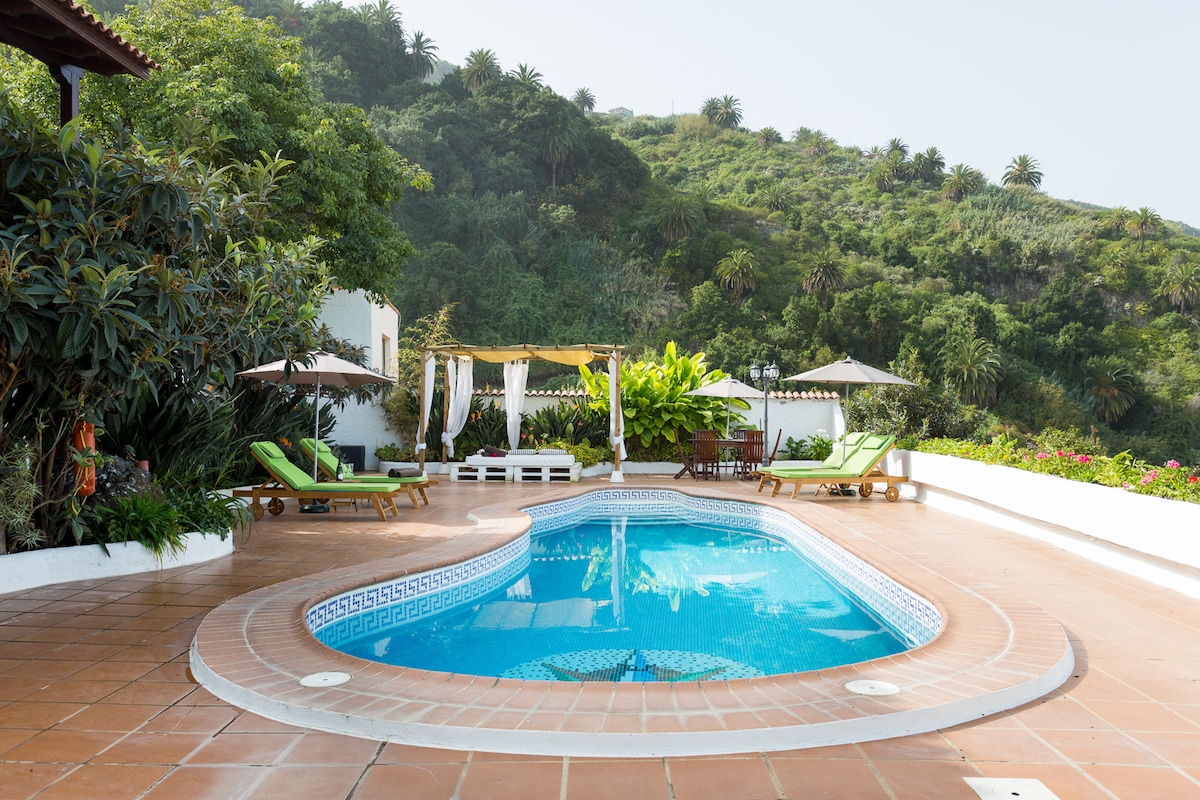 A bright and cozy house in a rural and relaxing environment, at the foot of the cliffs of La Culata, which offers charming trails, and located in the middle of one of the most beautiful villages in Spain, Garachico. The house has an outdoor pool and views.