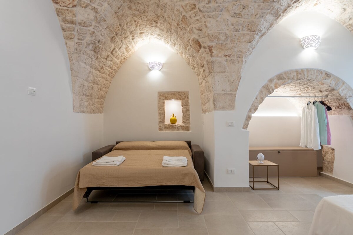 CIS: BR07401291000000188 CIN: IT074012B400033730 Vivi la magica sensazione di trovarti tra passato e presente: è una dimora storica! I pavimenti d'epoca e le pareti in pietra fanno da sfondo a un ambiente arredato con oggetti di design, vecchie ceramiche e mobili locali. L'ampio terrazzo privato, con solarium e doccia calda, saprà entusiasmarti: potrai rilassarti con un bicchiere di vino al tramonto, godere del sole su comodi lettini o preparare una cena in una magica atmosfera pugliese.