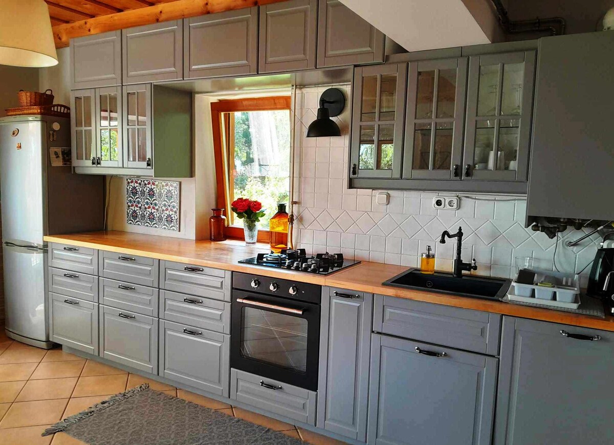 The 180m2 exclusive home is the perfect place for friendly families to relax together. The house has 3 double bedrooms, as well as a separate children's room with a bunk bed and a pull-out sofa bed. Our 45m2 private terrace is an ideal place for barbecuing, ping-pong matches. Our own 110m2 enclosed sports field is for active recreation. The living room-kitchen area is also more than 60m2, so even in bad weather, you can spend time in a great atmosphere, even by the fire in the fireplace.