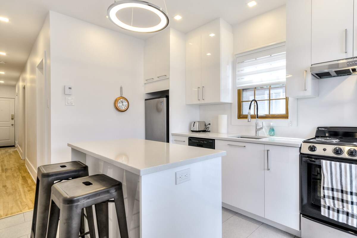 🛏️ Sleep Like a Dream – Plush queen-sized bed with hotel-quality linens. Rest easy after exploring Montreal. 📺 Netflix & Chill Ready – Smart TV with streaming apps. 🚿 Modern & Spotless Bathroom – 🍳 Fully Equipped Kitchen – Save $$ on dining out! Cook like a pro with all the essentials. 🚗 RARE FIND: FREE Parking! –Park for FREE. 🚀 Work & Play – High-speed WiFi + dedicated workspace for digital nomads. ✅ 14 mins to Downtown Montreal – Perfect for concerts, festivals, nightlife!