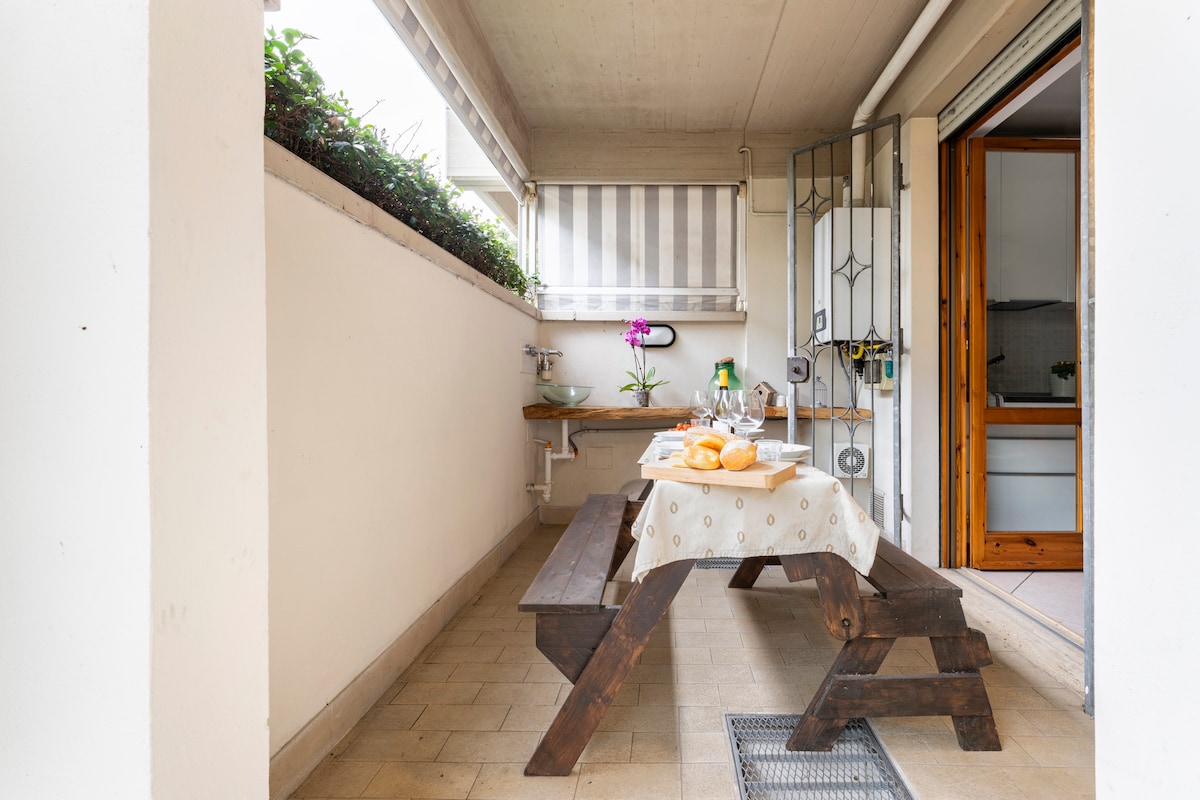Comodo appartamento in zona stazione, provvisto di parcheggio privato e piccolo cortile. Questa sistemazione è consigliata per due persone ma può accoglierne fino a quattro. LEGGI ATTENTAMENTE Al momento del check-in saranno richiesti i documenti degli ospiti e la tassa di soggiorno che ammonta a 1.50€/giorno per ogni persona maggiorenne.
