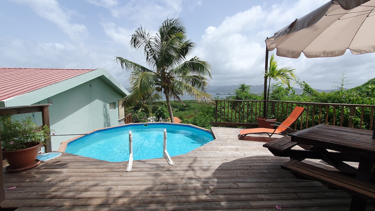 pour amateurs de mer et de nature, loue petite maison de charme entourée d'un jardin tropical s'ouvrant sur le large. Située dans le parc naturel régional de pointe savane ( randonnées en forêt vers les plages sauvages) dominant la baie de cayol et les îlets du robert.