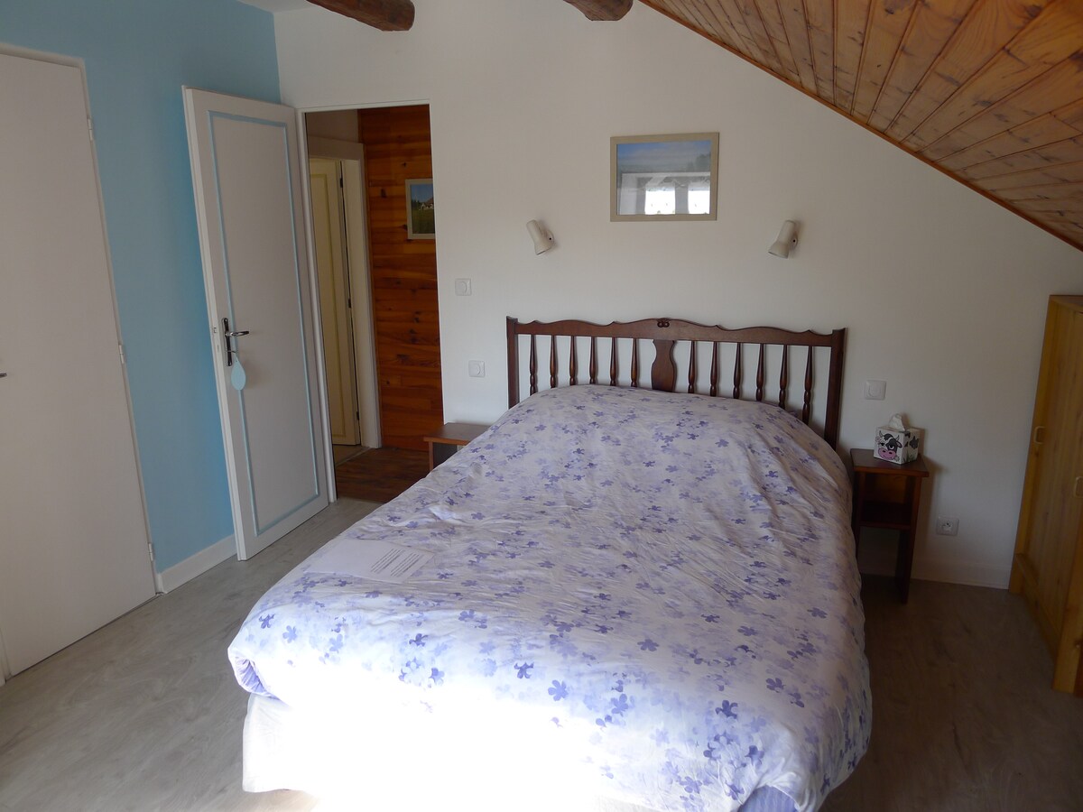 Quiet, nestled on the edge of the forest in nature, our room in our small mountain farm is ideal for relaxing, getting plenty of oxygen, and greenery. You can taste the cheeses, organic yogurts made on site. The pond is appreciated for relaxing moments by the water or in the water, fishing and the whole biotope. The sauna and its rest room invite our guests to relax even if the weather is gloomy.