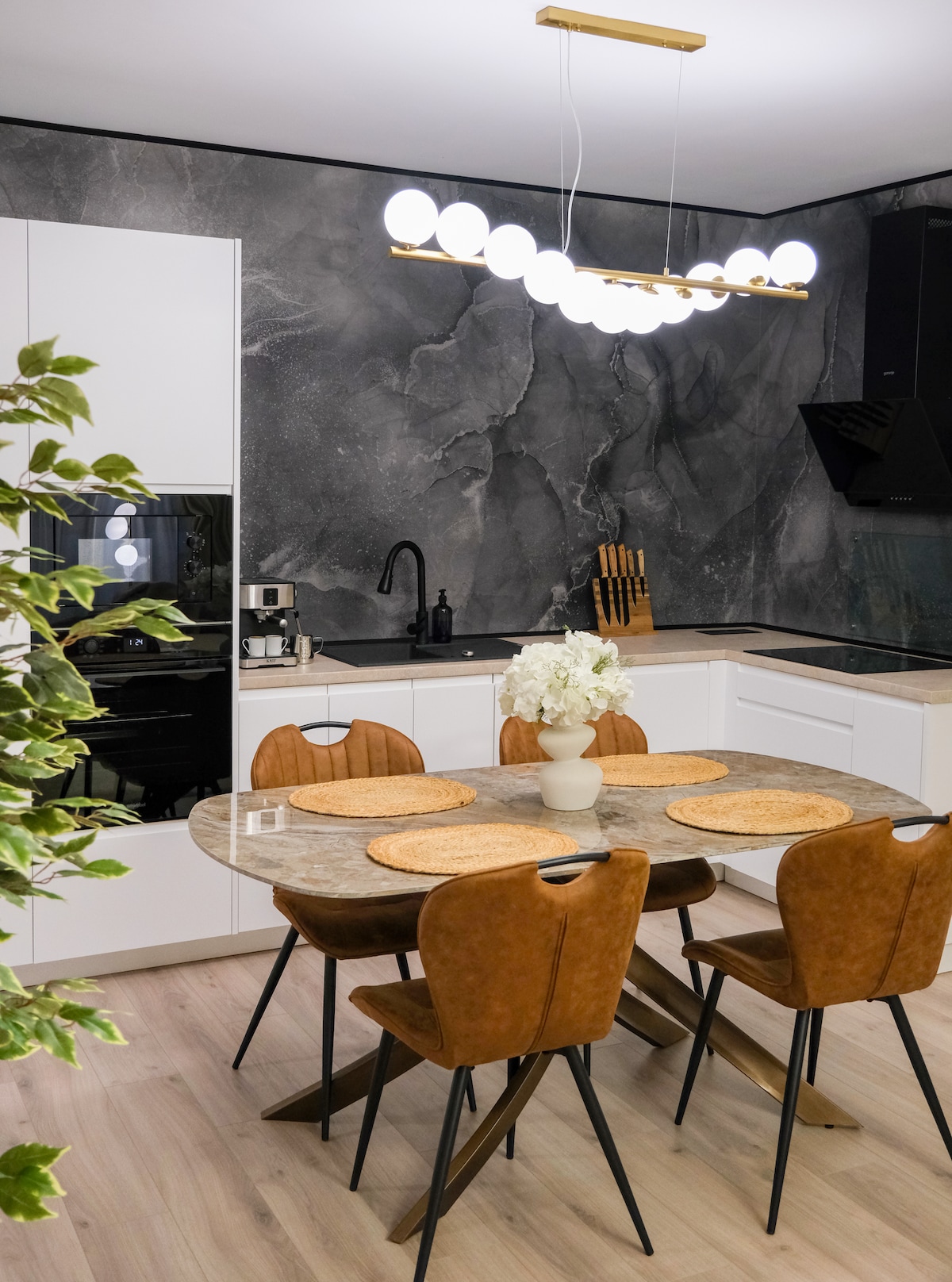 The entire group will feel comfortable in this spacious and unique home. Light is the most dynamic element in a decoration and can influence our mood both by its intensity and by the way it changes the colors of the chosen decor elements. Playing with light in an interior design is essential to create relaxation areas to highlight areas of interest proposed by the designer 🖤