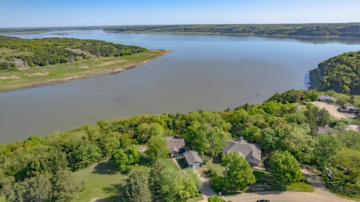 Lake View Lodge Retreat. This stunning 180 degree lake view home is located on a ridge at Tuttle Creek overlooking the lake and beautiful rolling flint hills. It's lodge decor including fine leather furniture, antler lamps and an enormous Buffalo mount give it a warm atmosphere. It is only a 10 minute drive to Kansas State University. This cozy retreat is a perfect space for game weekends, couples get away, business/church retreats, or a family vacation.