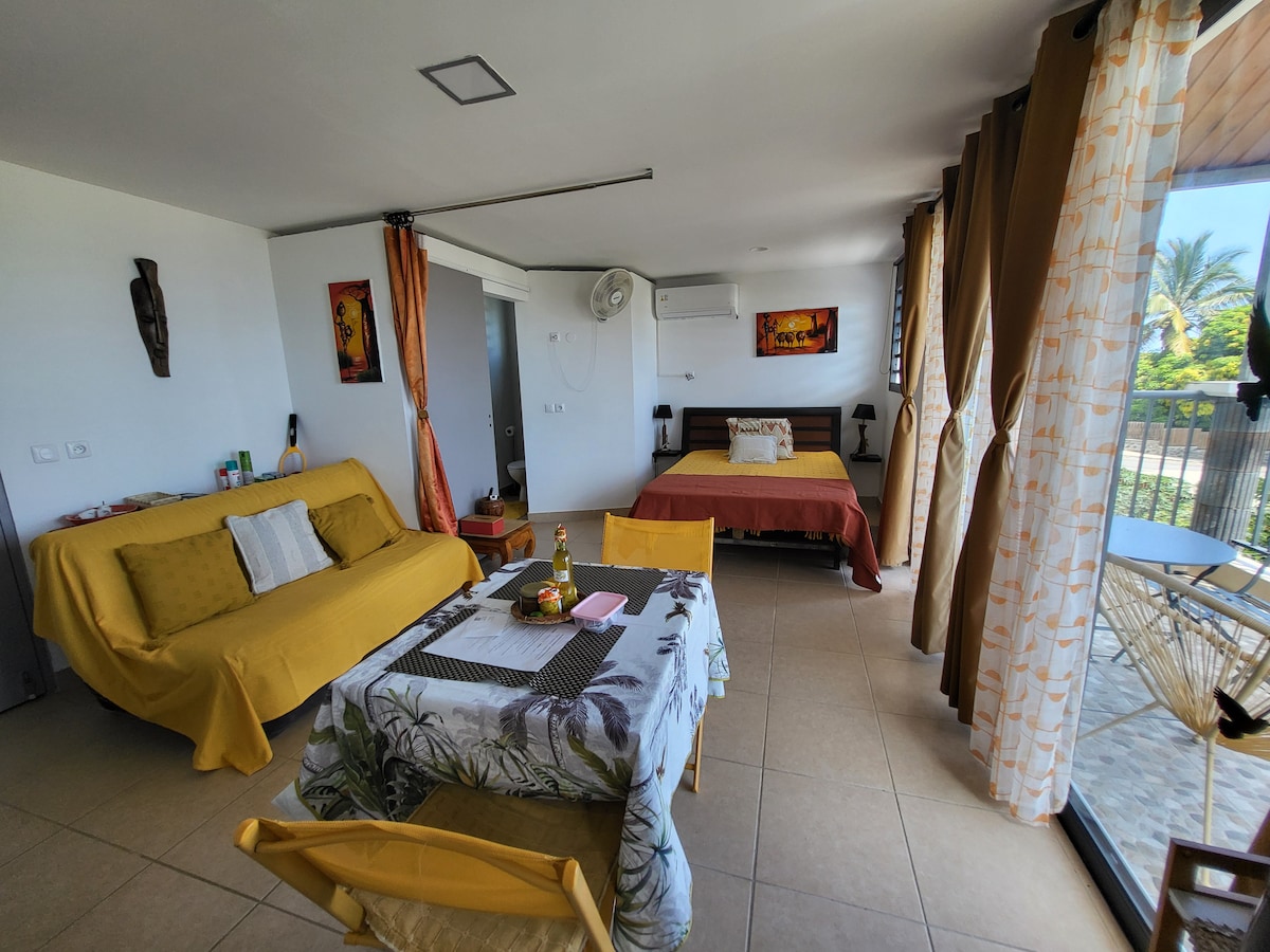 Cozy Tiny in a green setting, 5 min walk to L'Hermitage lagoon. Close to all amenities (bakery, supermarket, restaurants, as well as a bus stop). With its beautiful garden of lush palm trees and terrace, it is fully equipped to make your stay as enjoyable as possible! Air-conditioned, it has a bed (2 seats, 140/190) as well as a bench (1 seat bed), an indoor and outdoor shower, induction stove, microwave, fridge and Nespresso.