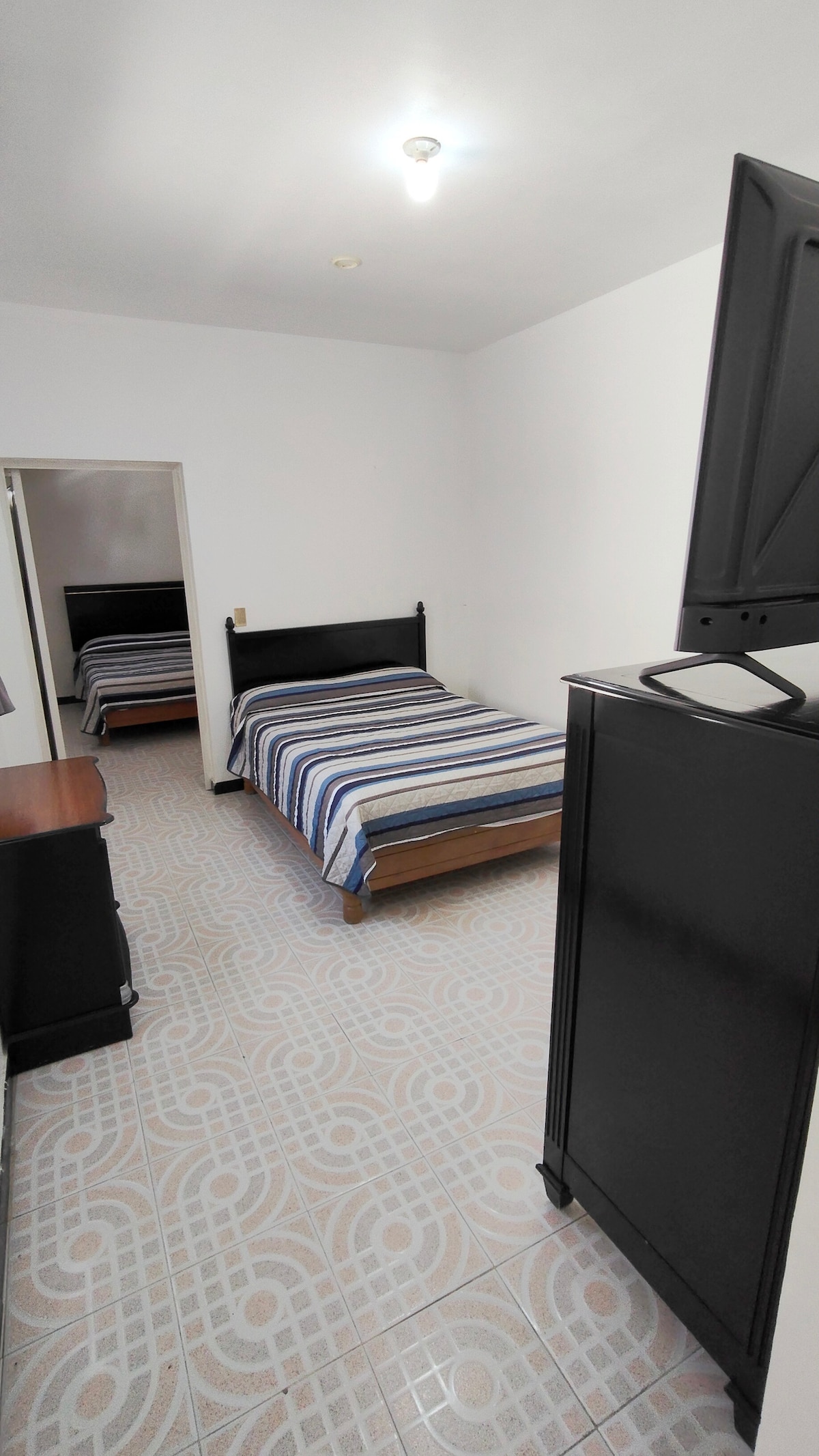 Amplia habitación ideal para grupos o familias Disfruta de un espacio cómodo y funcional con 3 camas, perfecto para alojar hasta varias personas sin sacrificar comodidad. La habitación cuenta con una distribución amplia que permite moverse con facilidad, además de una decoración sencilla y limpia para una estancia agradable. Incluye:. 3 camas cómodas. Aire acondicionado TV Espacio para relajarse o trabajar. Baño completo, lavandería con costo extra.