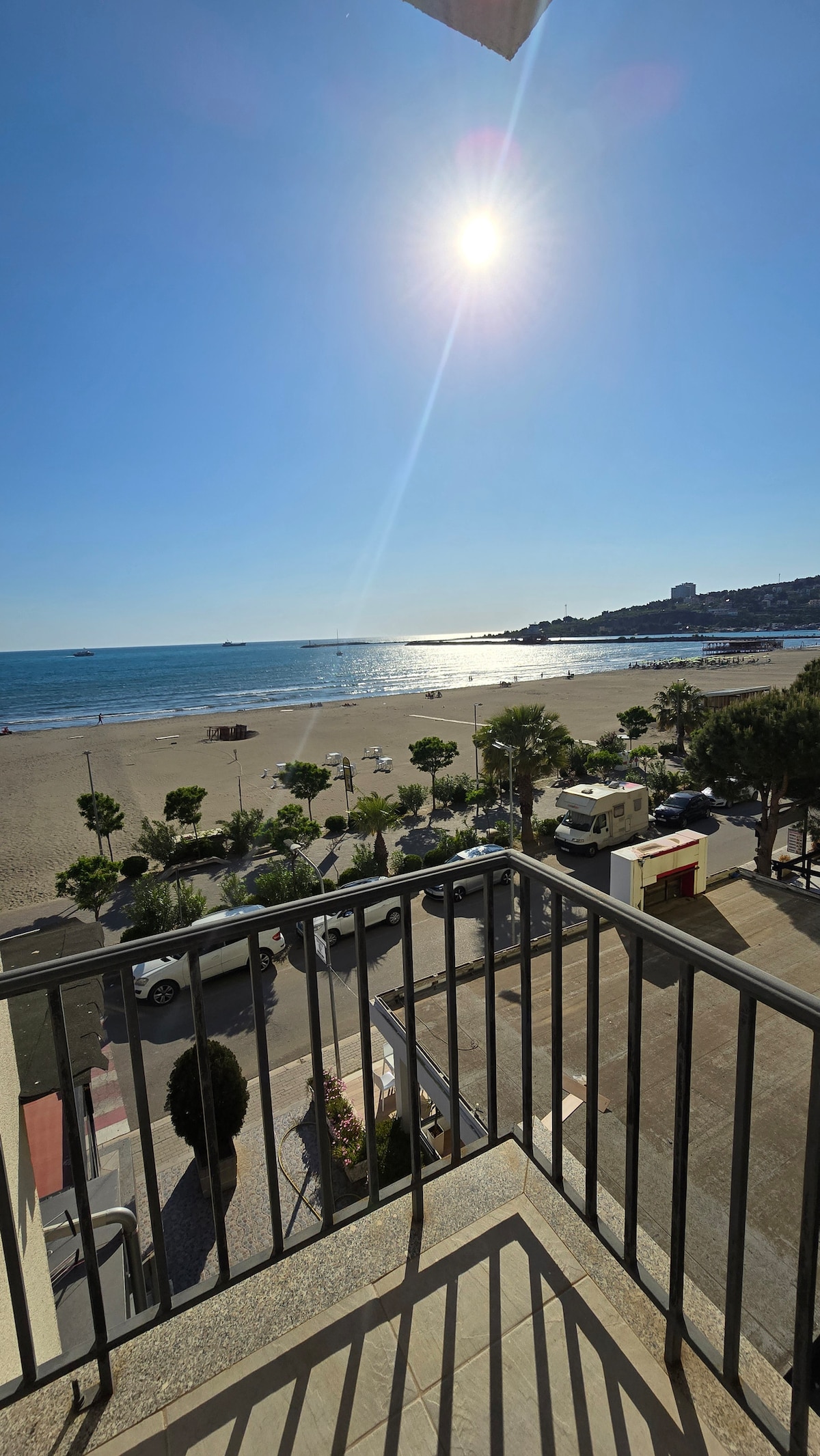 Welcome to our cozy beachfront apartment in Shëngjin! Located on the 6th floor with elevator, it has a side sea view, 1 bedroom, sofa bed, baby bed, A/C, washing machine, and a fully equipped kitchen. Suitable for 5–6 guests. Public or paid parking is available near the building. Supermarket downstairs. We welcome pets with an additional cleaning fee of €30 per stay. Ideal for families or couples with small children looking to relax by the sea.
